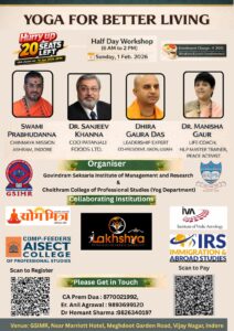 The Half Day Workshop – Yoga for Better Living is designed to promote physical well-being, mental clarity, and inner balance. Through guided yoga practices, breathing techniques, and mindfulness sessions, participants will learn practical tools to manage stress, improve flexibility, and enhance overall quality of life. This workshop offers a holistic approach to healthy living, suitable for beginners as well as experienced practitioners.